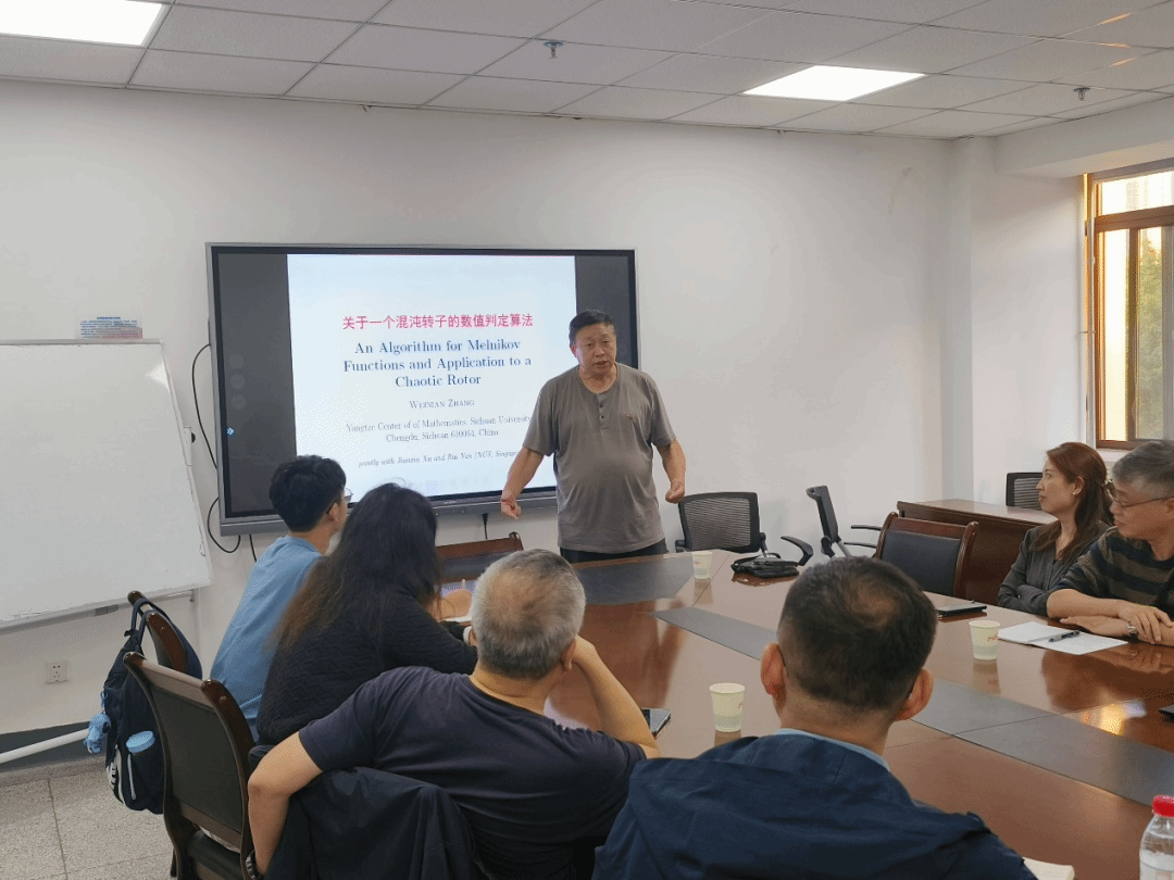 2023年10月31日,第二期“九章数学学术讲堂”在勇字楼701会议室进行,讲堂邀请四川大学张伟年教授作题为“一个混沌转子的数值判定算法”的学术报告。啪啪啦 院长聂玉峰、副院长都琳,以及徐伟、许勇教授等20余位师生参会,报告由许勇主持。