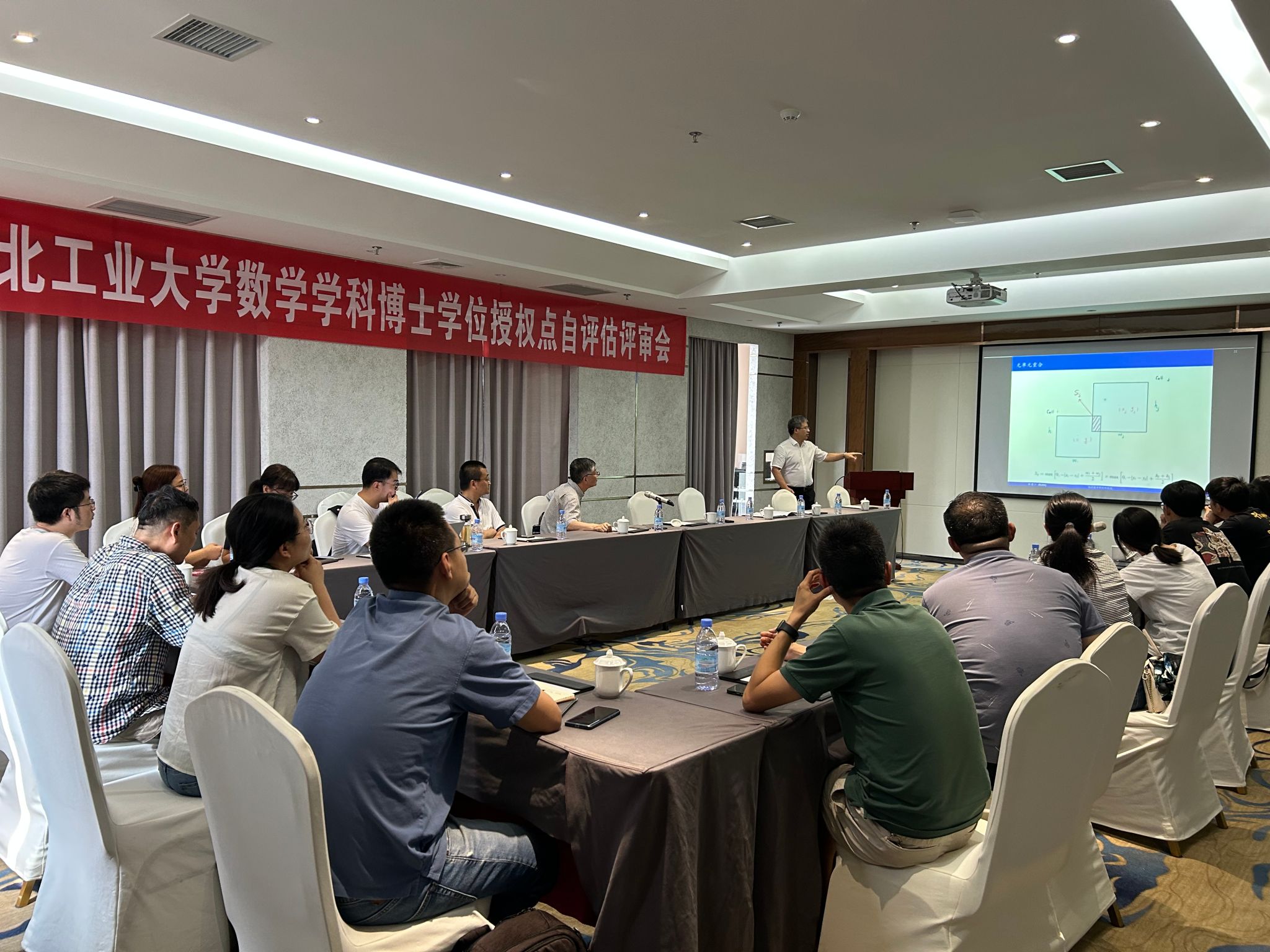 韩德仁教授以EDA布局模型为例,介绍了绝对值方程问题的发展历程和现有数值代数方法的不足。报告重点介绍了一种与牛顿法性能相媲美的非精确DR分裂方法以及非精确准则的设计策略。最后,韩德仁教授针对参会师生关心的前沿问题进行深入讨论和交流。