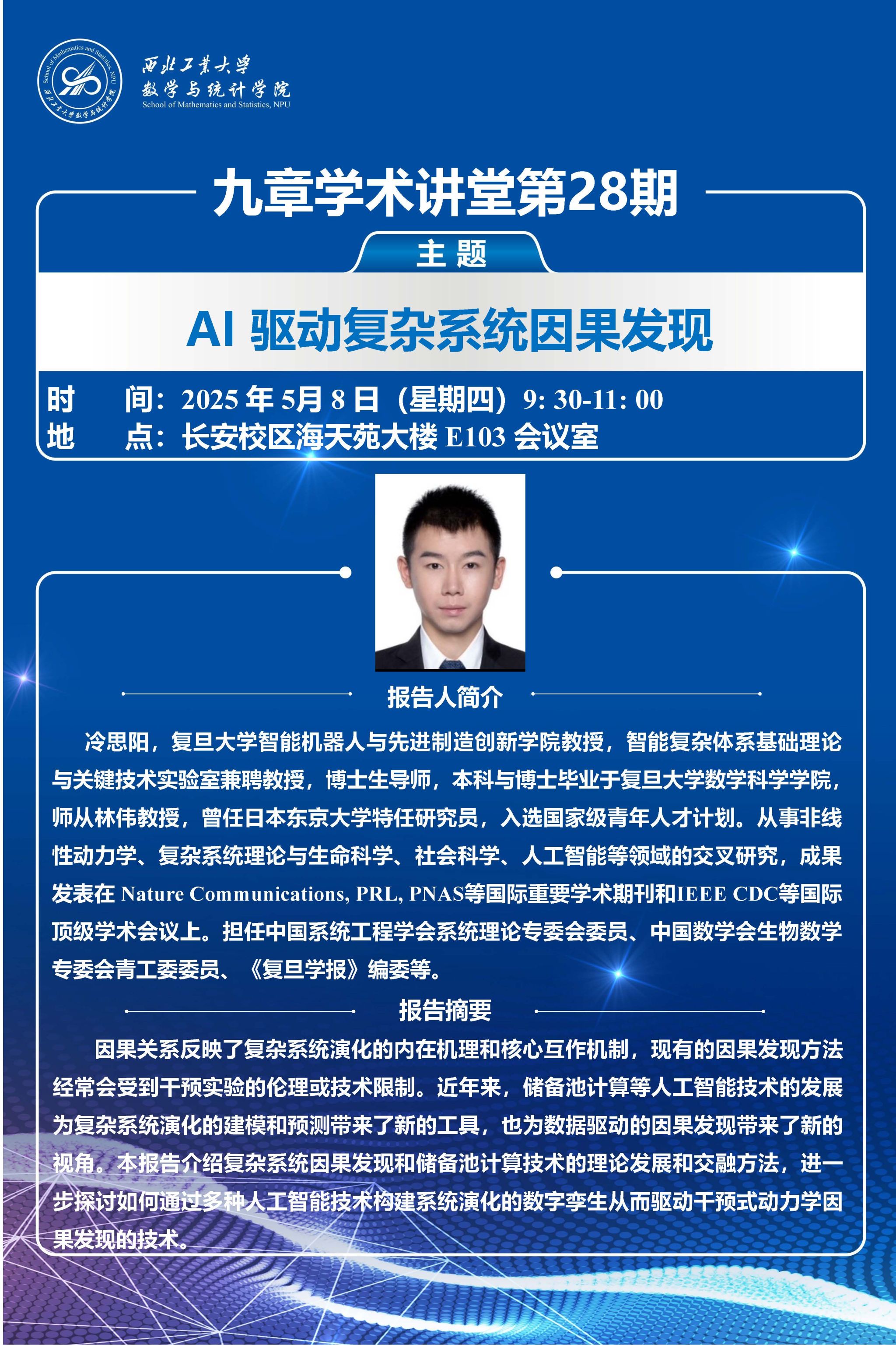 2025年5月8日,啪啪啦 第28、29期“九章学术讲堂”成功举办。讲堂邀请复旦大学智能机器人与先进制造创新学院冷思阳教授和复旦大学智能复杂体系基础理论与关键技术实验室史际帆副研究员,分别作题为“迁移学习下单细胞空间位置推断”和“AI驱动复杂系统因果发现”的报告,并与啪啪啦 教师围绕科研合作进行座谈。学院20余位师生参会,报告由裴斌教授主持。