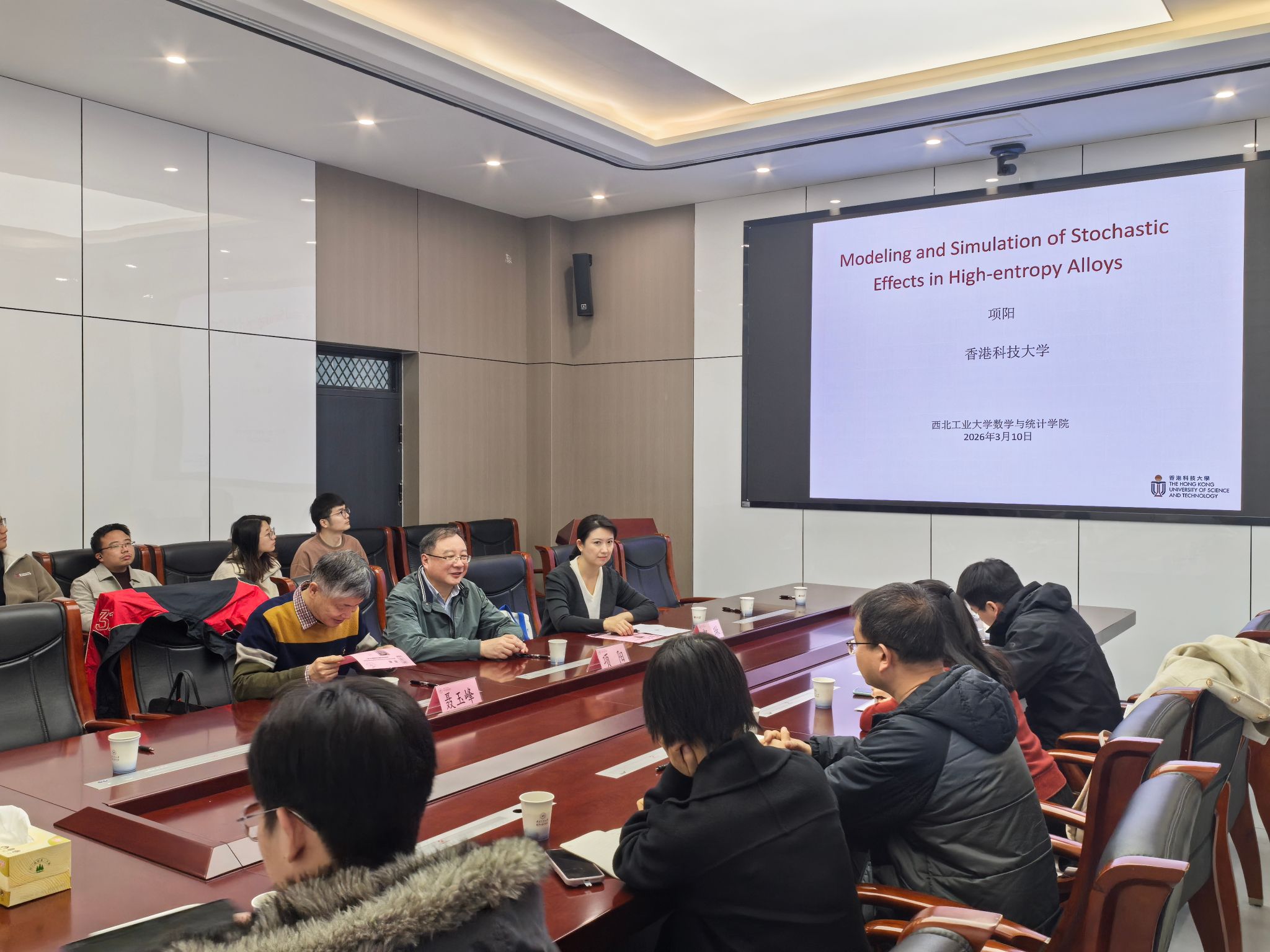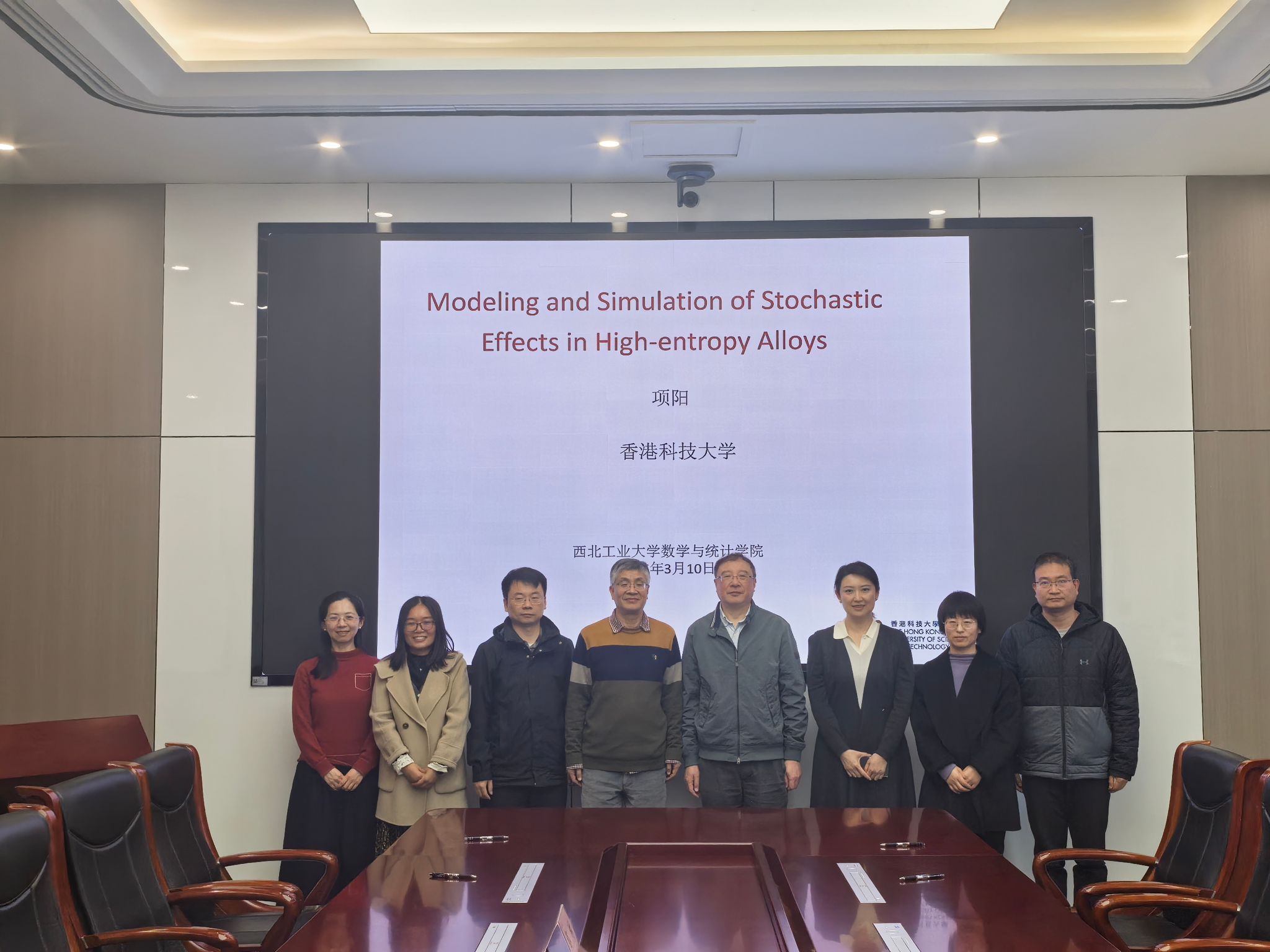 3月11日上午,“翱翔灵犀学术殿堂”第932期在长安校区海天苑大楼E103会议室举行。香港科技大学数学系项阳教授应啪啪啦 邀请作题为《Modeling Effects of Randomness in High Entropy Alloys》的学术报告。学院院长聂玉峰教授、副院长都琳教授等20余位师生参会,报告由聂玉峰主持。