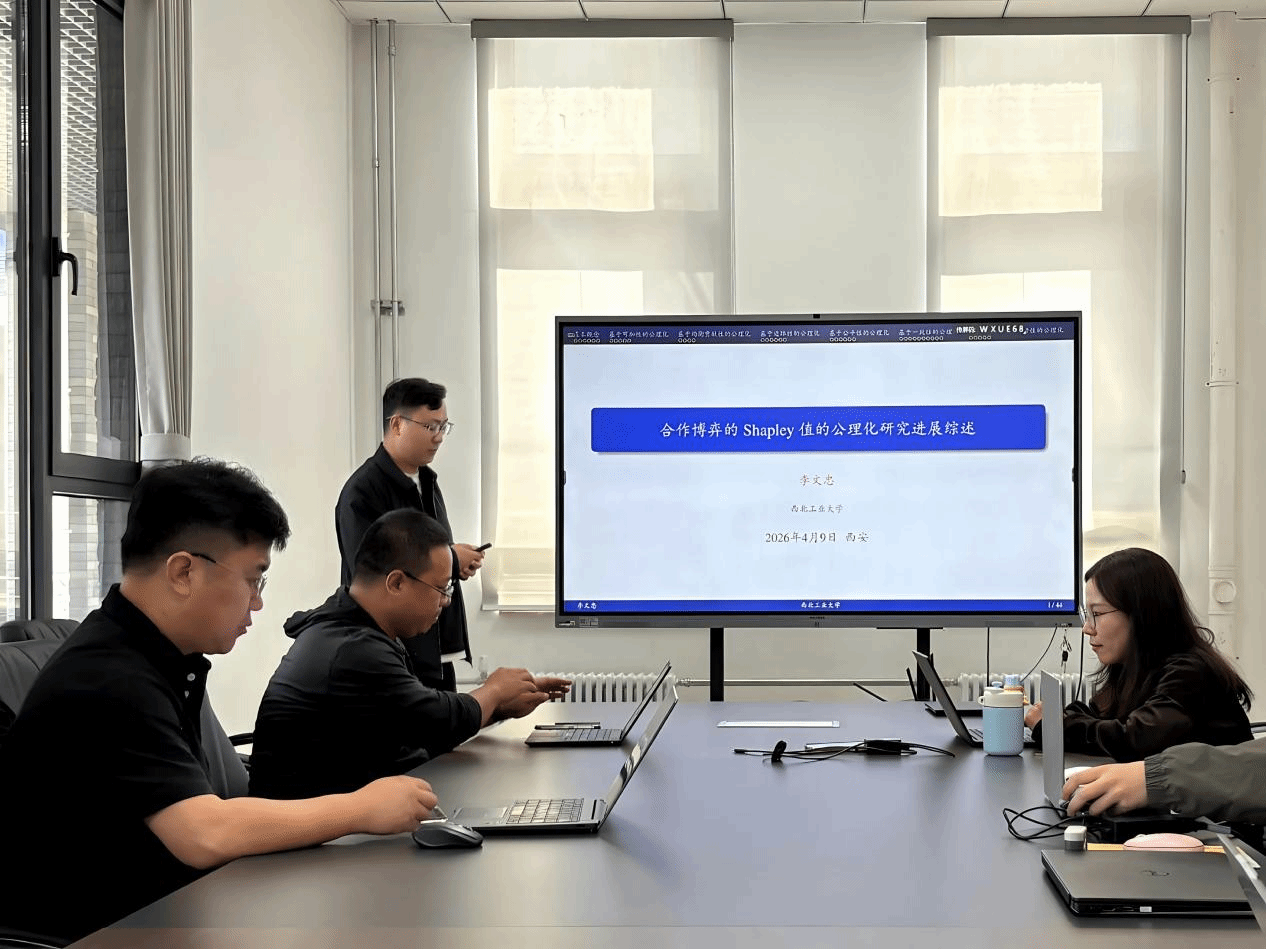李文忠副教授作了题为“合作博弈的Shapley值研究进展综述”的报告。报告中,他围绕合作博弈的核心议题——Shapley值展开深入讲解,系统分享了该领域的最新研究成果,详细阐释了Shapley值的核心理论体系,从多个研究维度深入探讨了其在合作博弈中的实践应用及公理化研究的最新突破,为相关领域的研究提供了重要参考。