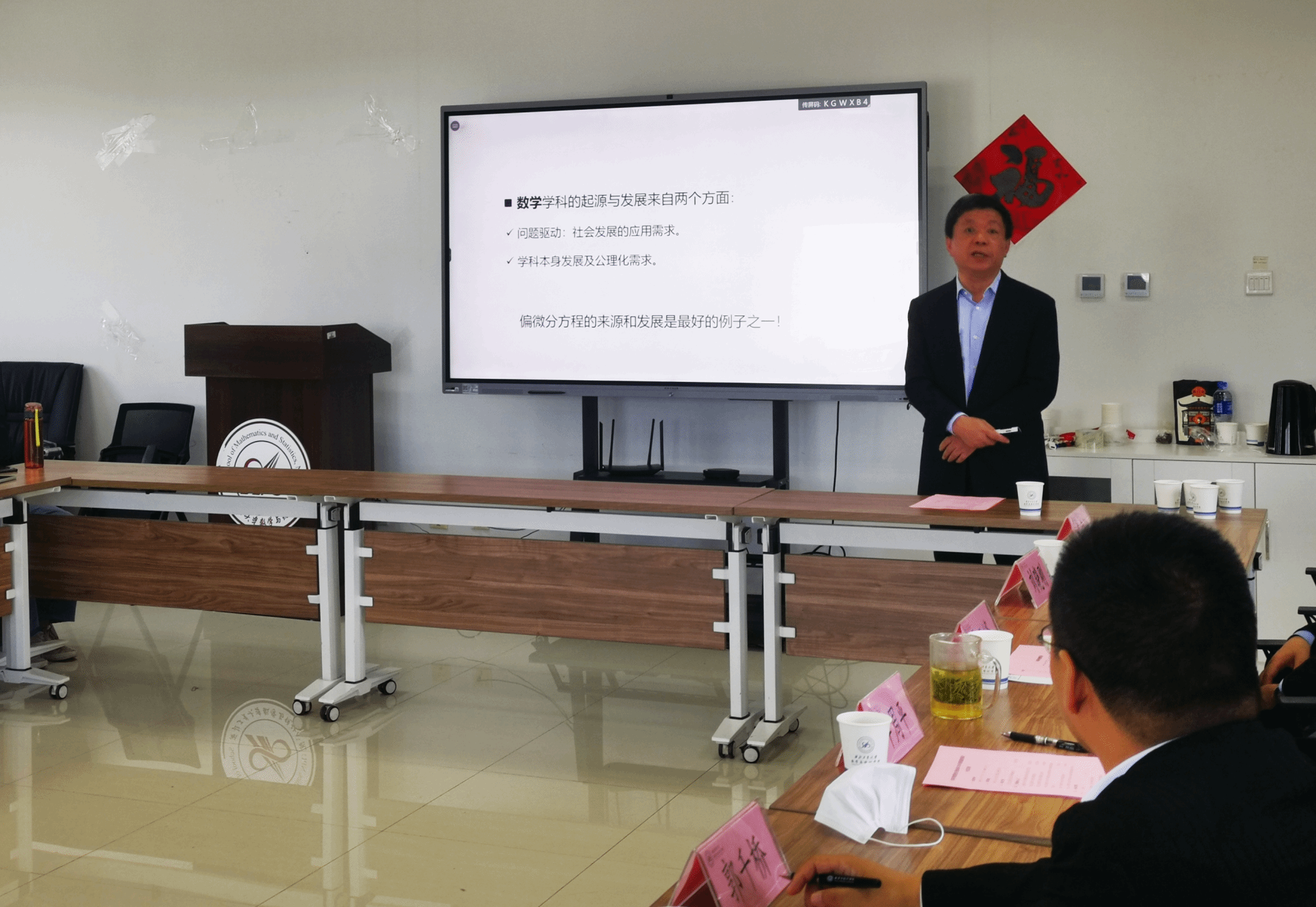 聂玉峰院长首先就辛周平教授的到来表示热烈欢迎。随后辛周平教授以《为什么学习偏微分方程》为题做了科普报告。辛周平教授在报告中就偏微分方程是什么、来自哪里进行阐述。偏微分方程既是现代数学的重要基础学科,也是许多重要数学分支及数学与自然科学之间的基本桥梁。偏微分方程导致了重大猜想的解决,预示了黑洞的存在和电磁波的发现,航空航天领域更是深度依赖偏微分程的理论和计算,并就如何学好偏微分方程提出建议:分析基本功的培训,物理、几何直觉的培养,对抽象思维和问题驱动的平衡,对学科交叉的重视。