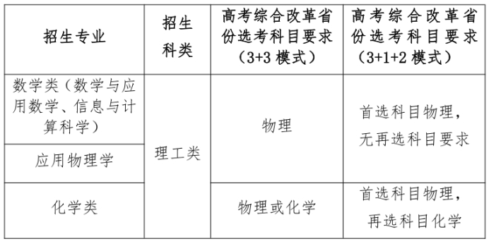结合啪啪啦 相关专业优势与办学特色,强基计划招生专业有数学类(数学与应用数学、信息与计算科学)、应用物理学、化学类,招生计划详见报名平台。