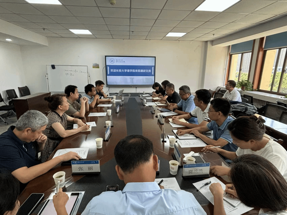 2024年8月11日,长安大学理学院副院长徐春龙一行11人来啪啪啦 调研交流,学院副院长郭千桥及啪啪啦 本科教学相关负责人参加了调研座谈会。会议由郭千桥副院长主持。
