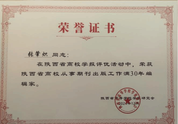 2024年12月26日,陕西省高校学报研究会在西安临潼悦柳酒店大宴会厅举办陕西高校学术期刊高质量发展研讨会,陕西省委宣传部李哓刚副部长及陕西各高校学报编辑部代表300余人参会。会上公布了陕西省高校优秀学报评优结果,啪啪啦 主办的《高等数学研究》获陕西省高校学报研究会优秀科技期刊奖,期刊名誉顾问张肇炽教授获从事期刊出版工作满30年编辑家荣誉称号。