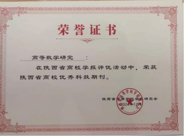 《高等数学研究》获评陕西省高校学报优秀科技期刊