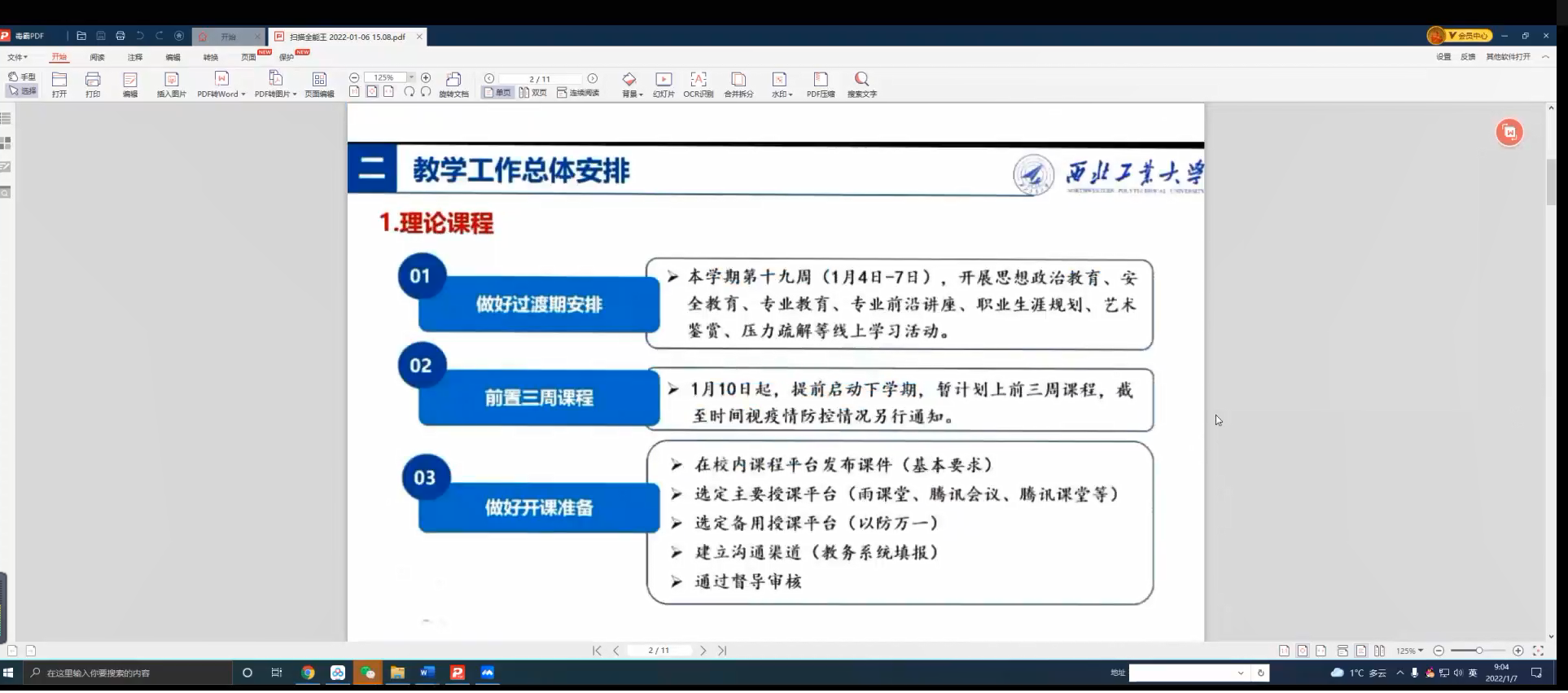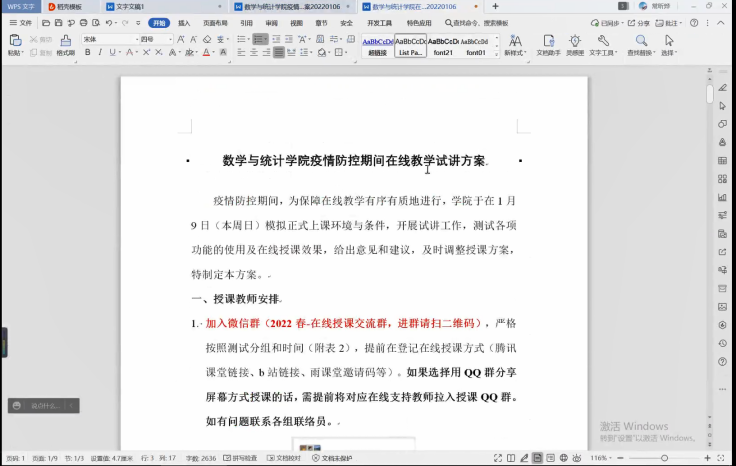 随后,教学秘书常昕烨介绍了学院在线教学测试和教学督导工作方案,并重点介绍了在线测试的课程分组、测试时间及人员安排等。
