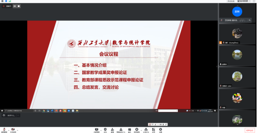 都琳代表学院向各位委员介绍了国家教学成果奖、教育部课程思政示范课申报立项的基本情况,重点介绍了学院前期相关的建设情况与成果积累等。