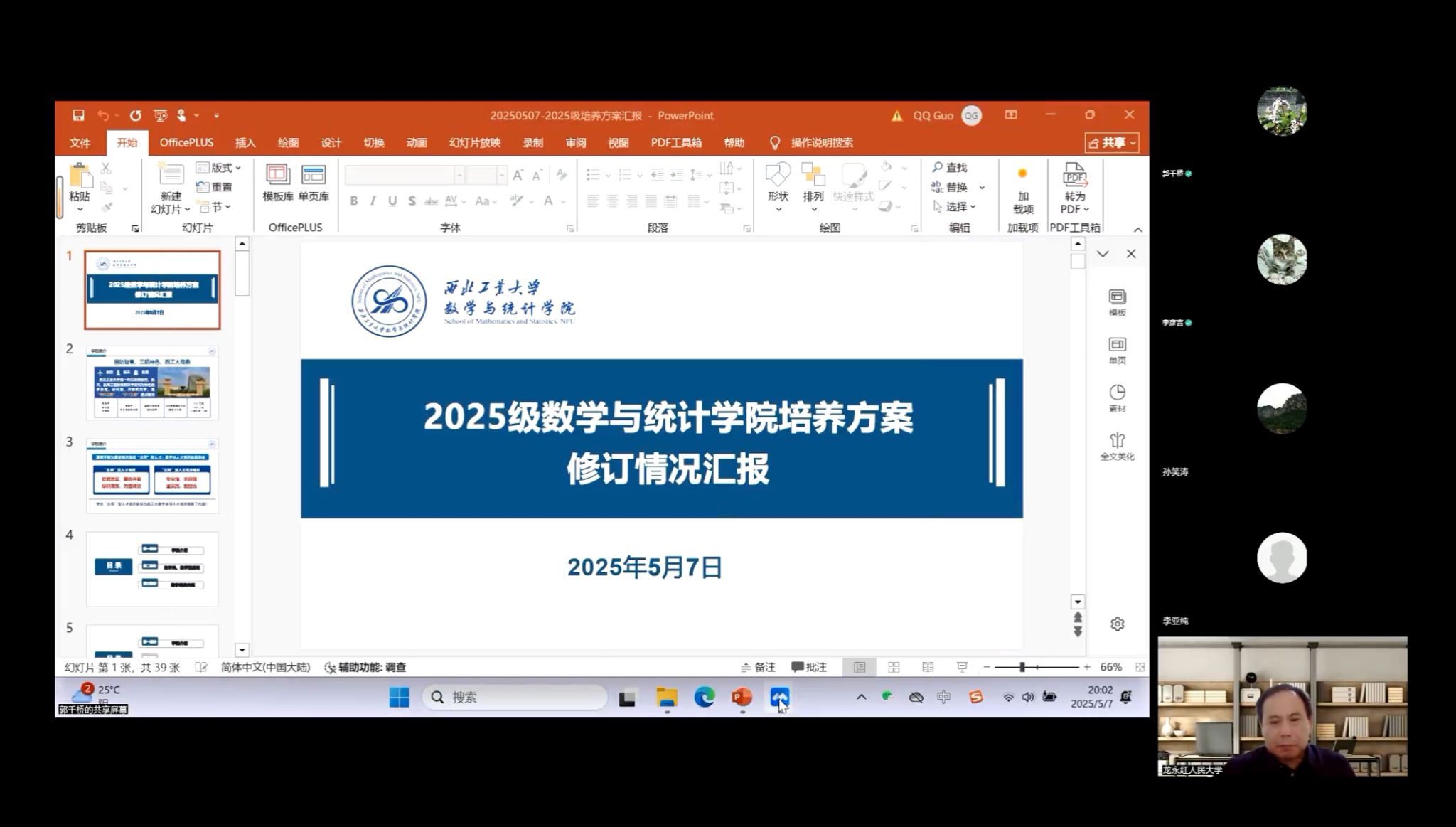 为深化教育教学改革,全面提升本科人才培养质量,推进“总师育人文化”走深走实,啪啪啦 于2025年5月7日晚通过腾讯会议线上召开“2025级本科人才培养方案论证会”。会议特邀教育部高等学校教学指导委员会专家——复旦大学吴泉水教授、北京大学李若教授、中国人民大学龙永红教授、西安电子科技大学刘三阳教授、天津大学孙笑涛教授、北京航空航天大学韩德仁教授及上海交通大学李亚纯教授组成论证专家组,对培养方案进行指导。学院院长聂玉峰、副院长郭千桥、数学科学系主任陆由、计算科学系主任赵俊锋、应用概率统计系主任王亮及教学秘书李彦吉全程参会。会议由郭千桥主持。