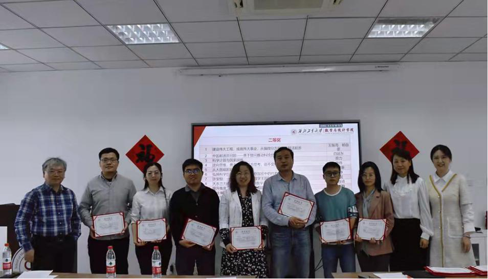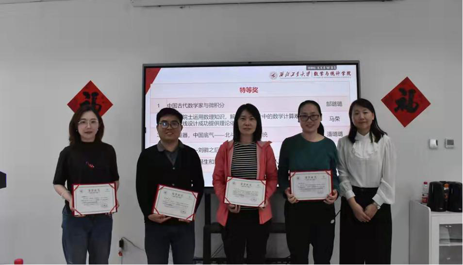 为贯彻落实《一流本科人才培养行动计划》,全面推进课程思政建设,提升全体教师的课程思政意识,充分发掘课程育人功能,啪啪啦 举办首届数学类课程思政教学案例设计大赛。本次大赛由啪啪啦 课程思政教学研究中心主办,共收集数学类课程思政教学案例160余例,经初评、外审和会评三个环节,共评出特等奖5项、一等奖10项和二等奖14项,并于4月8日在启翔楼357进行颁奖典礼。学院党委书记王莉、副院长都琳、教学委员会主任彭国华以及20余位获奖教师出席了此次颁奖典礼,典礼由学院课程思政中心副主任潘璐璐老师主持。