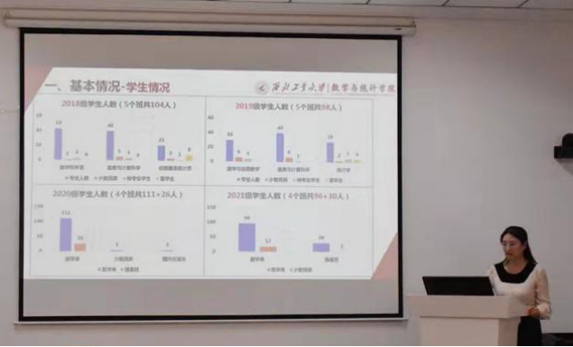 聂玉峰表示,专业负责人和专业首席要进一步落实岗位职责,加强专业顶层设计,重视专业质量提升,加大专业建设力度。他强调,要加强专业课程的课堂教学管理,促使学生端正学习态度、形成良好学风,提升教学效果,进而提升专业深造率。同时分享了数值分析这门课程过程性考核和学生学习情况,表示专业基础课程作为十分重要,要重视课程的教学成效,让学生的专业素养得到真正的提升。