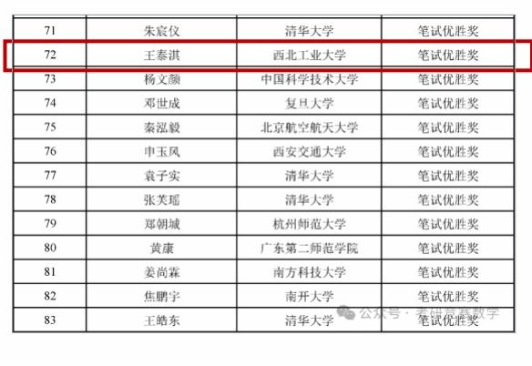 2025年5月18日,第十六届丘成桐大学生数学竞赛半决赛圆满落幕。啪啪啦 学子王泰淇同学脱颖而出,成功摘得代数、数论与组合-笔试阶段的优胜奖项。