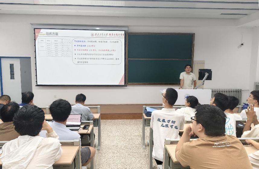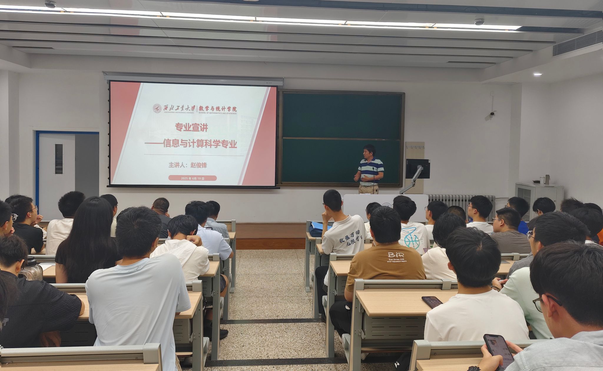 为有效推进“总师育人文化”走深走实,为2024级本科生专业分流答疑解惑,2025年6月19日晚,啪啪啦 在教西B205召开专业宣讲会。副院长郭千桥、院长助理兼2024级辅导员班凯、数学科学系副主任夏健康、计算科学系主任赵俊锋、应用概率统计系主任王亮、教学秘书李彦吉及全体149名2024级本科生参会。会议由郭千桥主持。