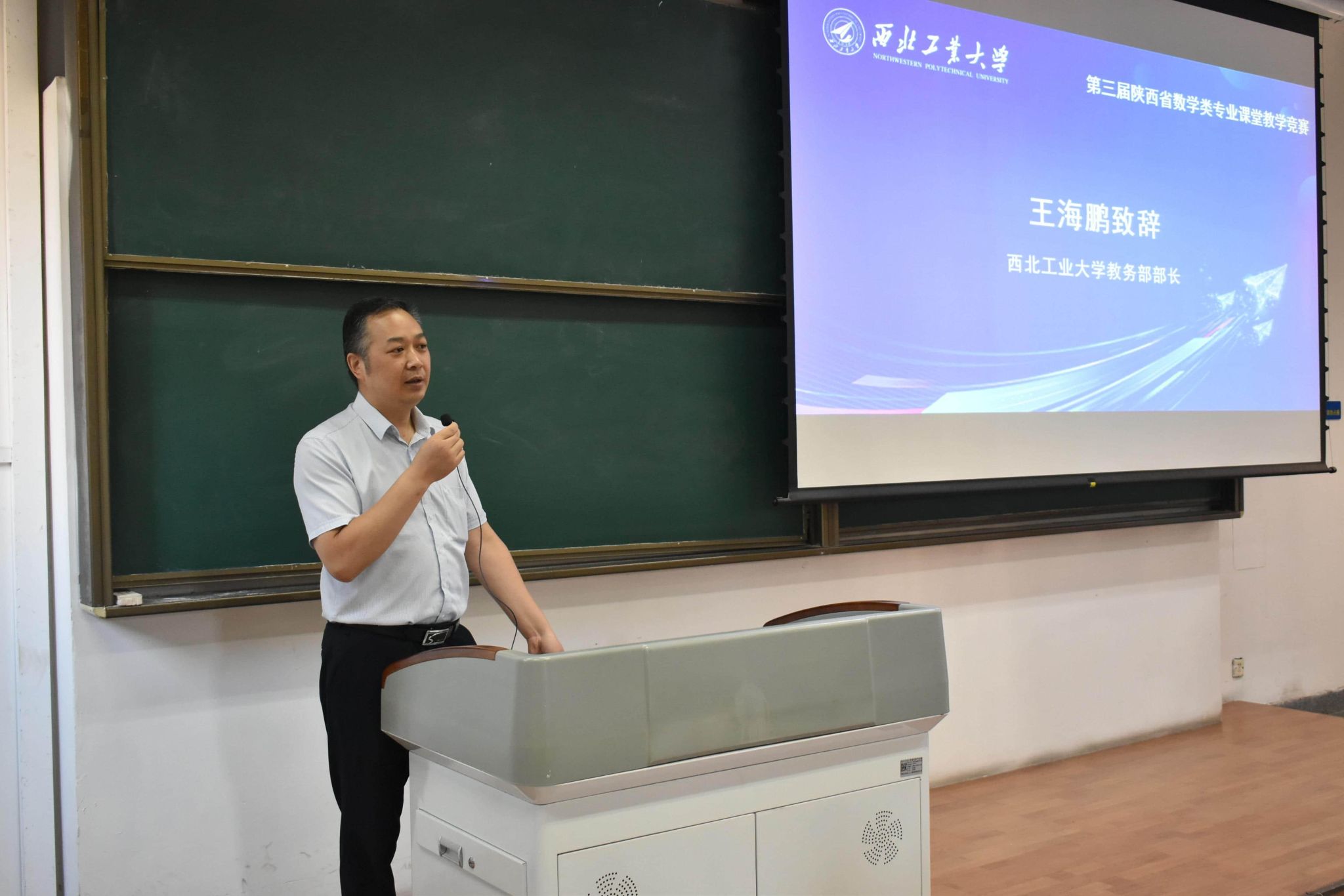 啪啪啦 教务部部长王海鹏在开幕式上致辞,代表学校对莅临指导的各位评审专家表示诚挚欢迎和衷心感谢,并向成功晋级现场决赛的28位参赛教师致以热烈祝贺。