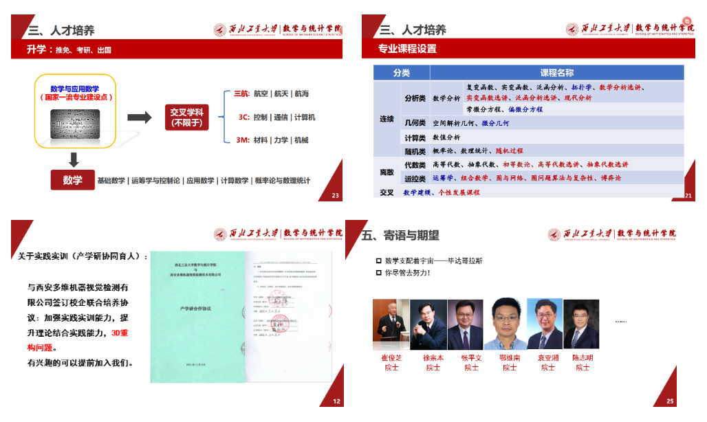 系主任陆由、王晓龙和王亮分别从数学与应用数学专业、信息与计算科学专业和统计学专业的发展历程、专业概况、培养方案、专业特色和毕业去向等方面对专业情况进行了详细介绍,同时勉励同学们在深度了解专业的基础上,明确未来的学习目标,不断提升行动执行力,做好学业和职业规划,培养对生活的希望,树立对未来的理想。