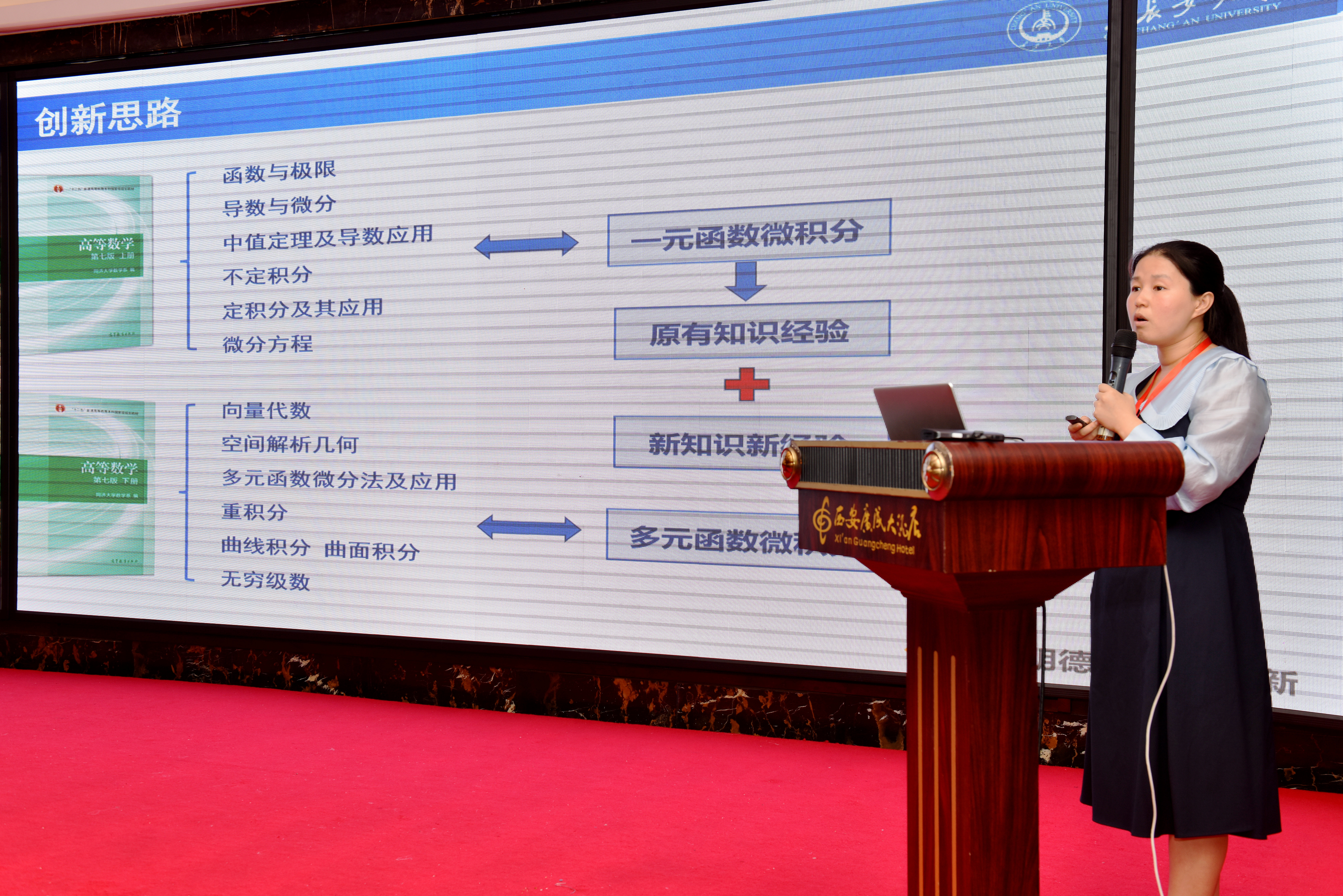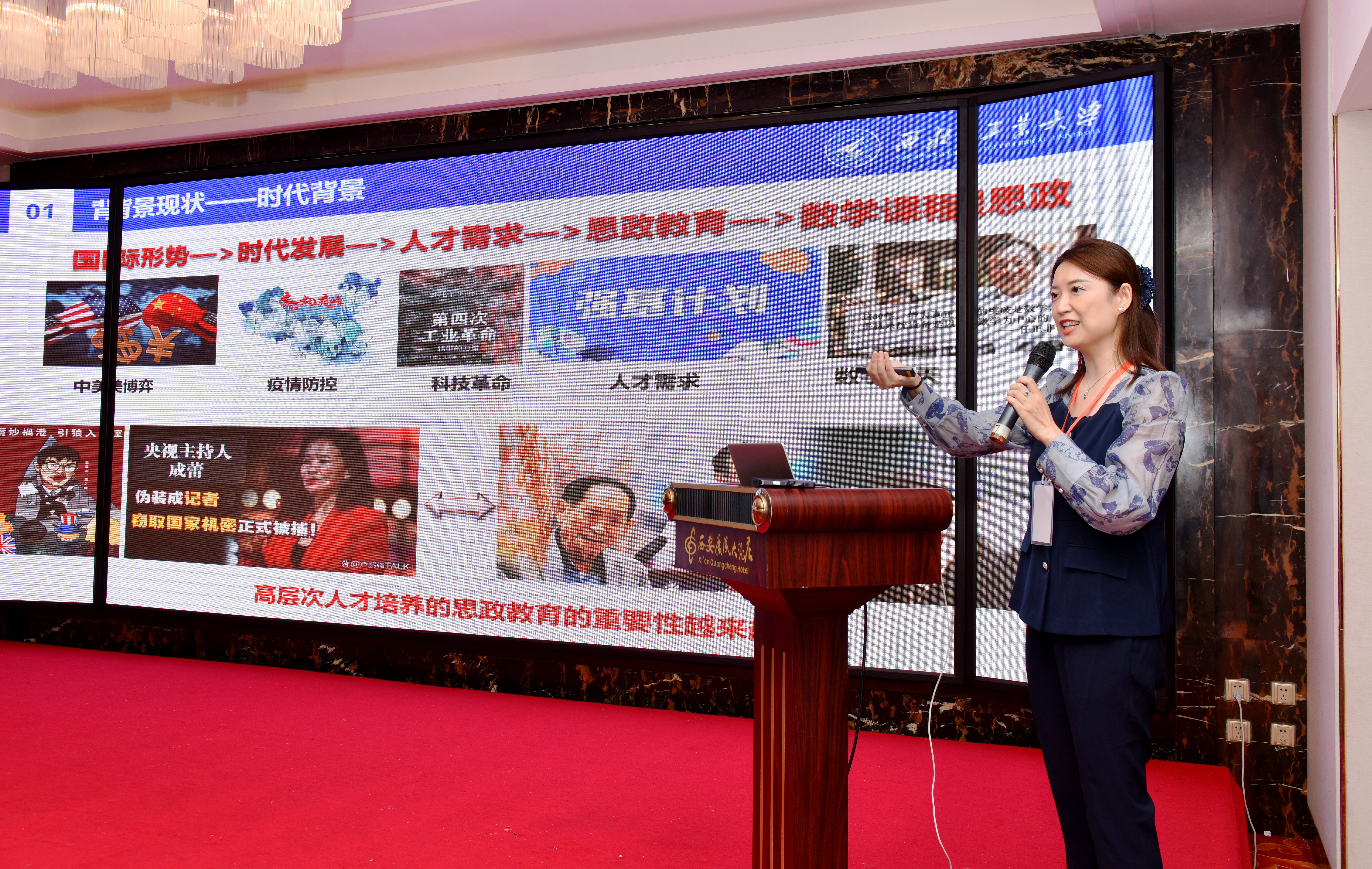 会议的特邀专家分享环节由西安交通大学城市学院副校长朱旭教授主持,特别邀请 啪啪啦 副院长都琳教授以“肩负时代使命 践行课程育人——《概率论与数理统计》课程思政探索与实践”为题进行分享,特别邀请长安大学杨莹老师以“基于建构主义学习理论的《高等数学(下)》课程教学创新——以‘对弧长的曲线积分’为例”为题的课程教学创新示范交流分享。