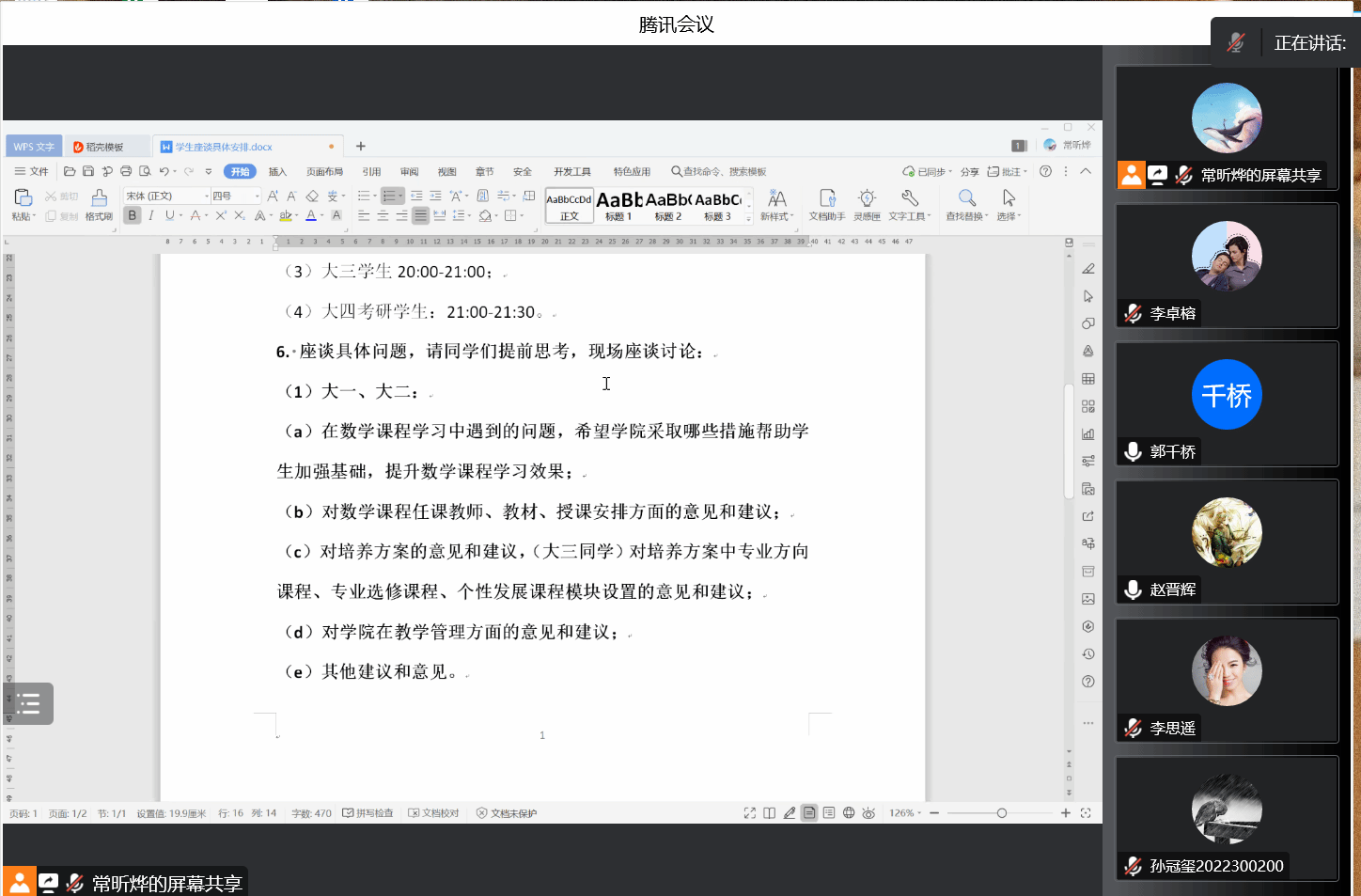 为贯彻落实一流本科人才培养行动计划,提高立德树人质量,2023年1月6日,啪啪啦 召开期末本科生线上座谈会。啪啪啦 教学副院长郭千桥,院长助理刘晓刚,教学秘书常昕烨、李思遥、李卓榕,及本科四个年级的学生代表参加了本次会议。