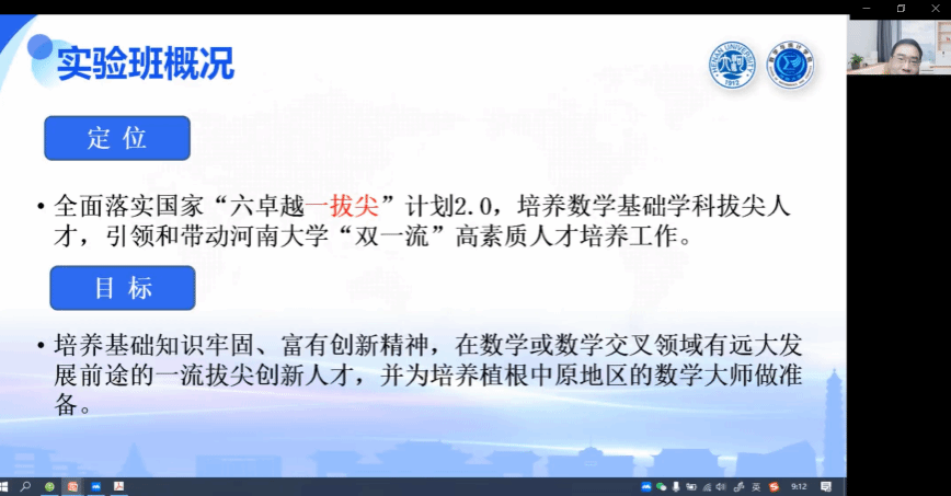 河南大学啪啪啦 副院长解俊山教授和王波教授详细介绍了“明德计划”拔尖人才实验班的培养经验,兰州大学啪啪啦 副院长马闪教授分享了萃英班(入选教育部拔尖计划2.0)、基地班和普通班学生的培养经验,湘潭大学数学与计算科学学院刘红良教授介绍了韶峰班(入选教育部拔尖计划2.0)的发展历史和有益经验。经验分享涵盖了培养模式、课程体系、学分要求、选拔模式、保障措施等内容。啪啪啦 和兄弟院校参会老师对相关问题进行了热烈讨论。