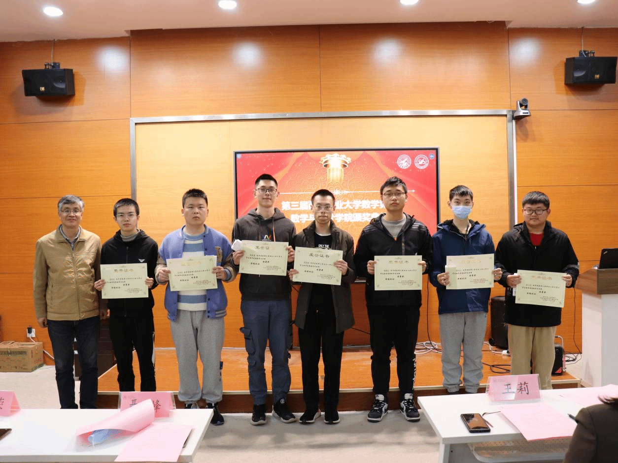 本次数学竞赛共有1114名学生报名参赛。经评审委员会评审,按照公平、公正、公开的评选原则,最终评选出非数学专业组:特等奖67人,一等奖162人,二等奖237人,三等奖176人;数学专业组:特等奖8人,一等奖18人,二等奖24人,三等奖21人。