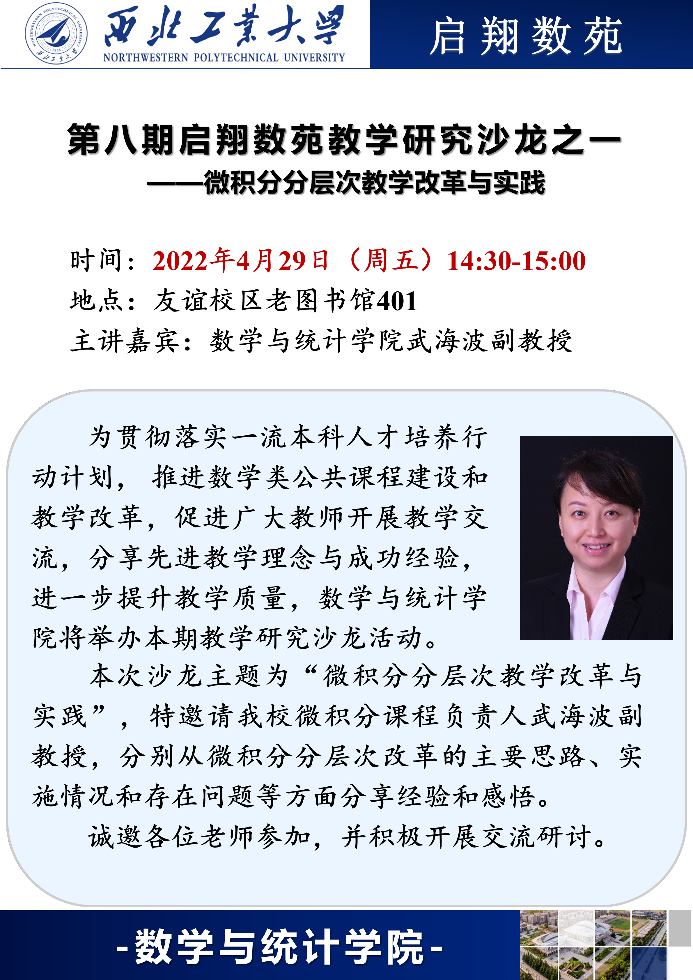 为贯彻落实一流本科人才培养行动计划,推进数学类公共课程建设和教学改革,促进广大教师开展教学交流,分享先进教学理念与成功经验,进一步提升教学质量,啪啪啦 将举办第八期教学研究沙龙活动。