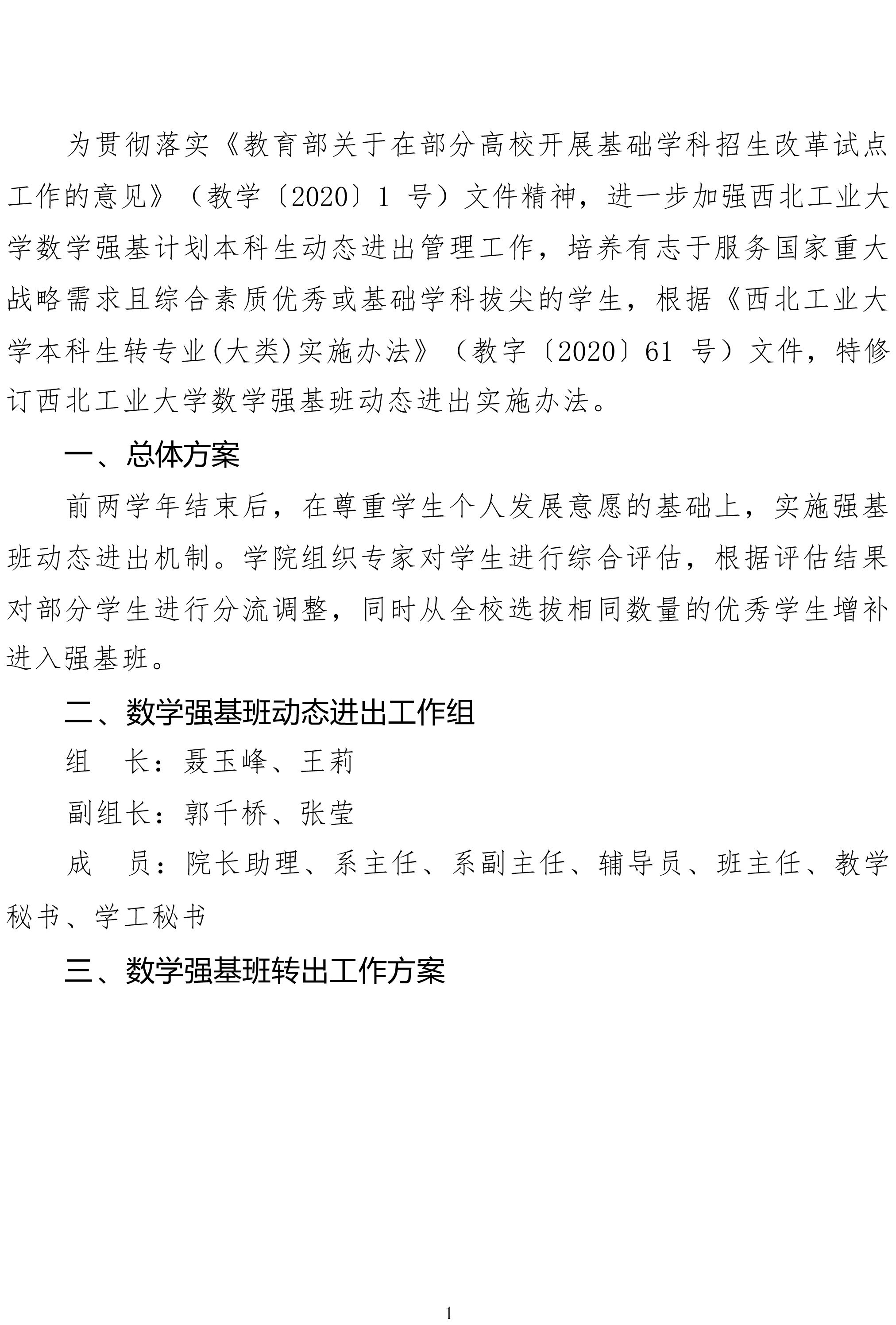 啪啪啦 数学强基班动态进出实施办法通知(试行)