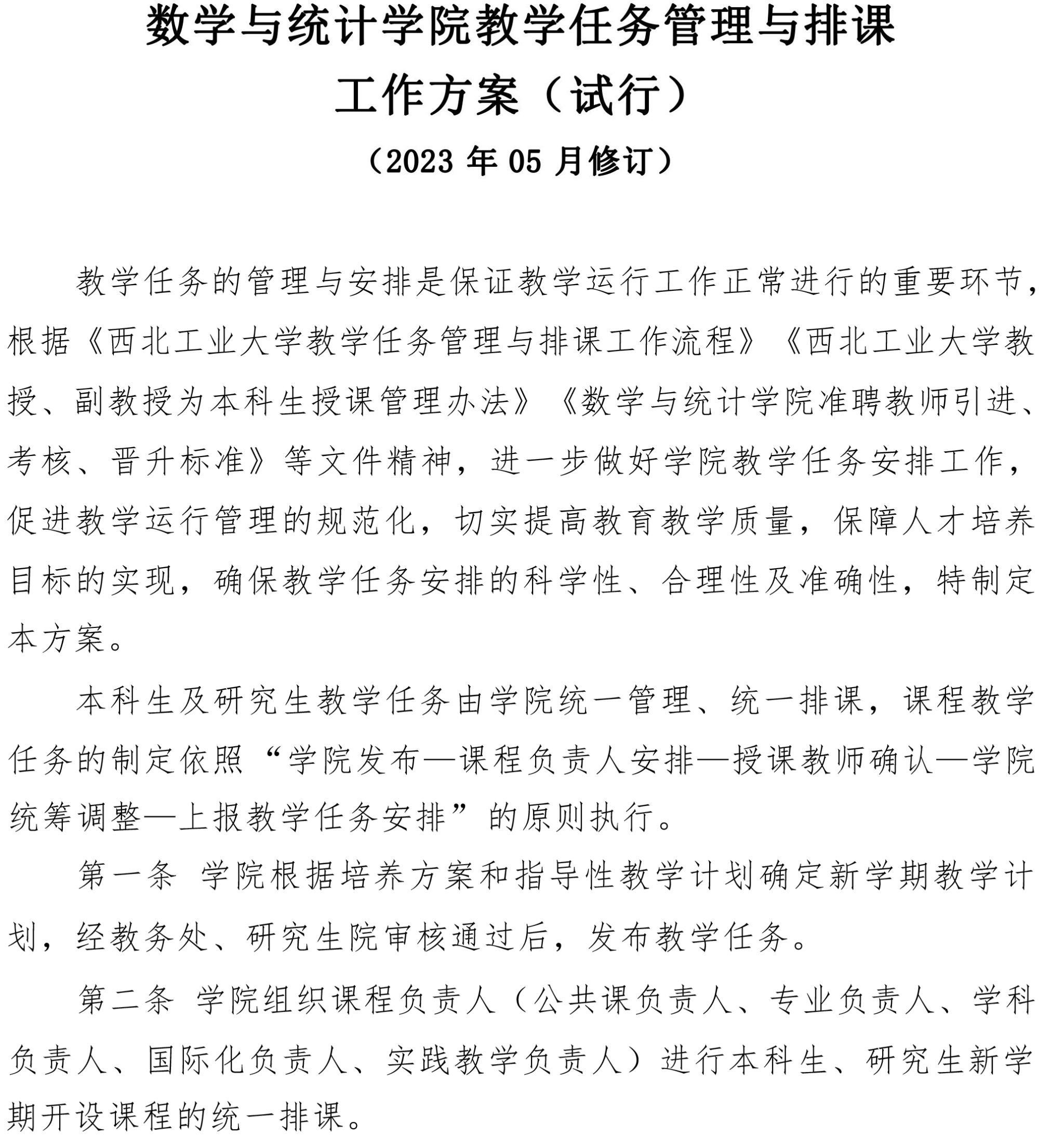 啪啪啦 教学任务管理与排课工作方案(试行)