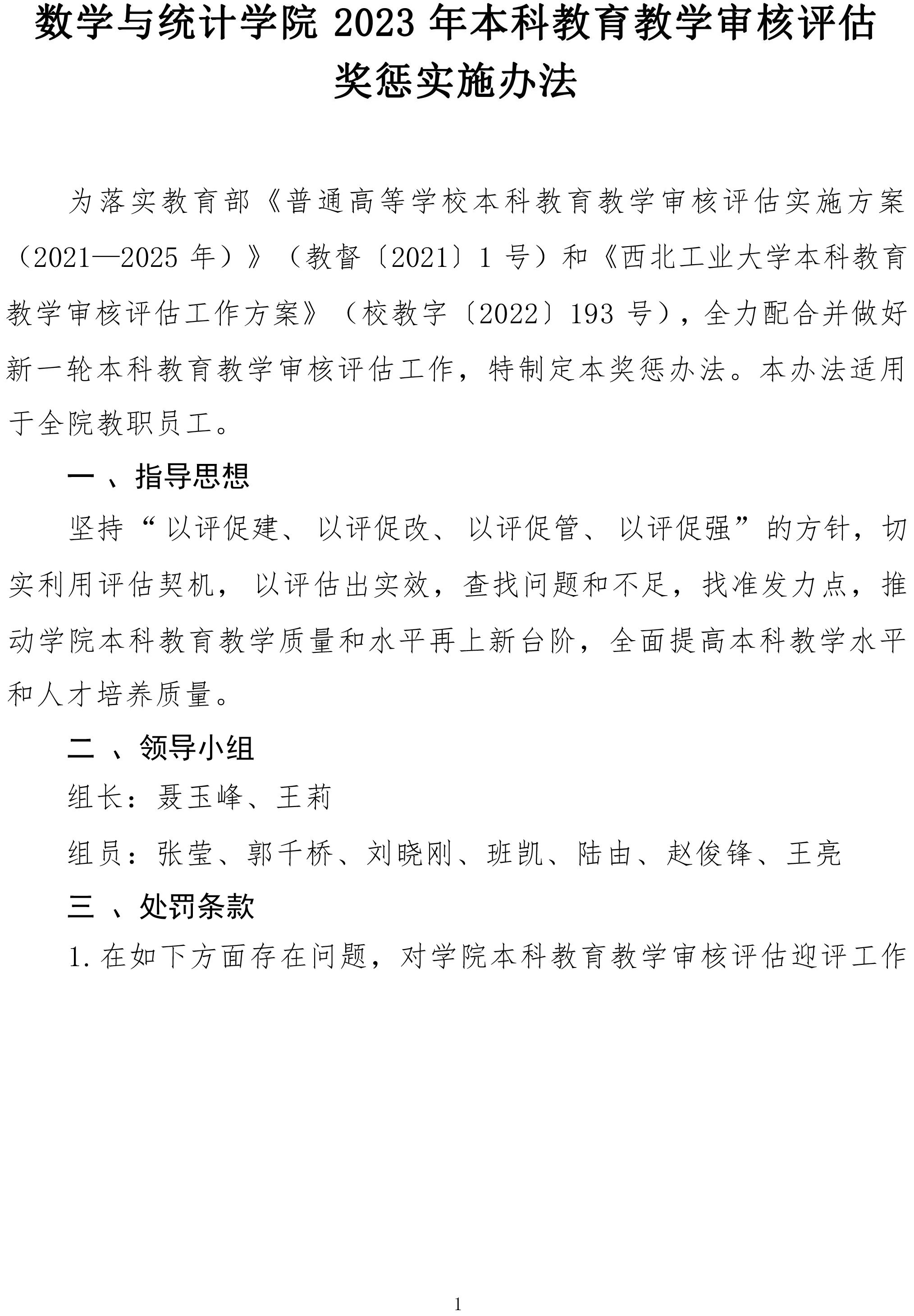 啪啪啦 2023 年本科教育教学审核评估奖惩实施办法