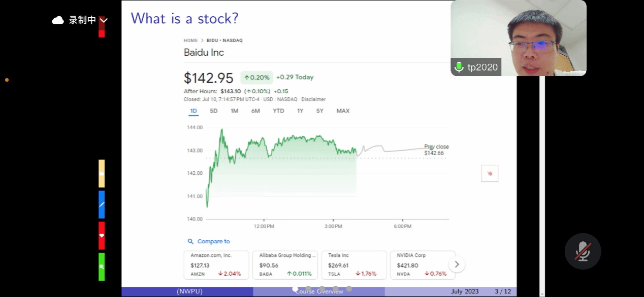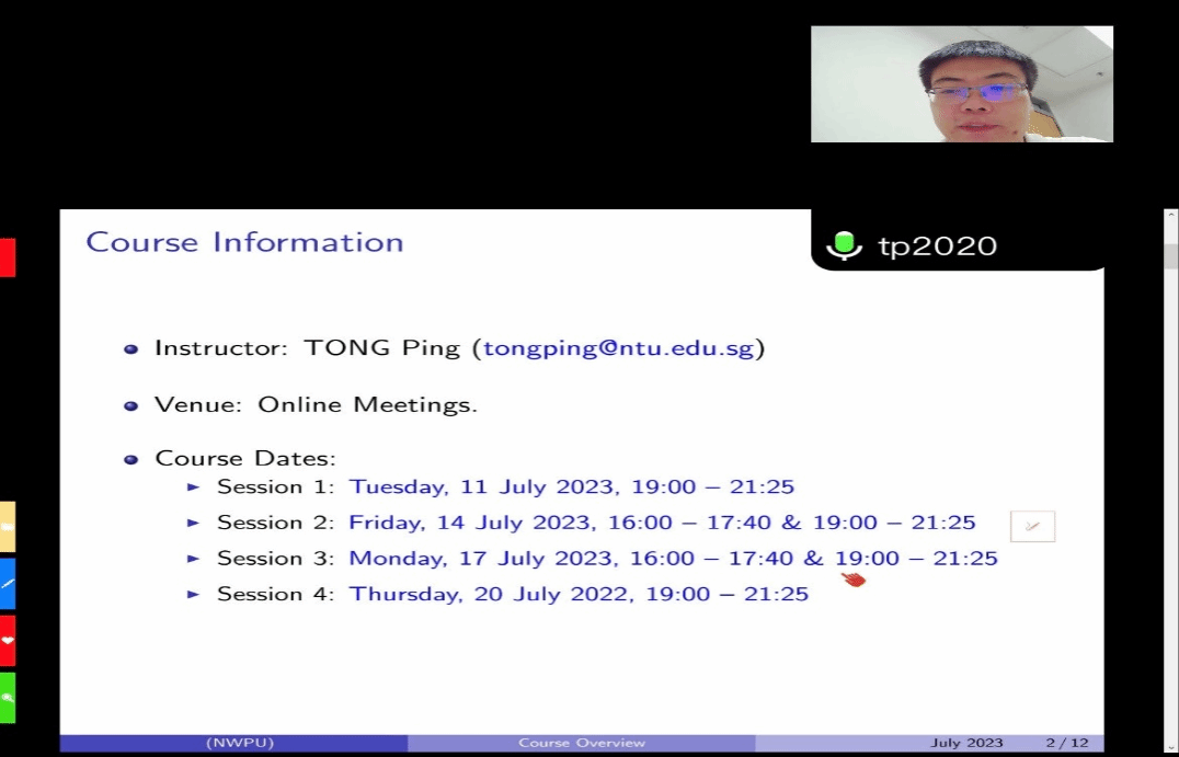 2023年7月20日,暑期国际讲堂《广义概率论和金融数学》课程圆满结课,授课教师是来自新加坡南洋理工大学的童平副教授。