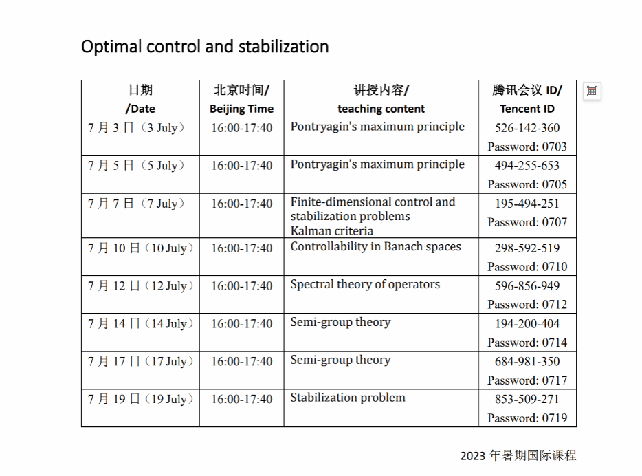 2023年7月3日至19日,俄罗斯莫斯科州立大学Alexey Gorshkov副教授受复杂系统动力学与控制团队都琳教授邀请,为啪啪啦 师生线上讲授了暑期国际课程《最优控制与稳定性分析》。参与人员涵盖啪啪啦 、机电学院等学院10余名本科生、研究生及青年教师。