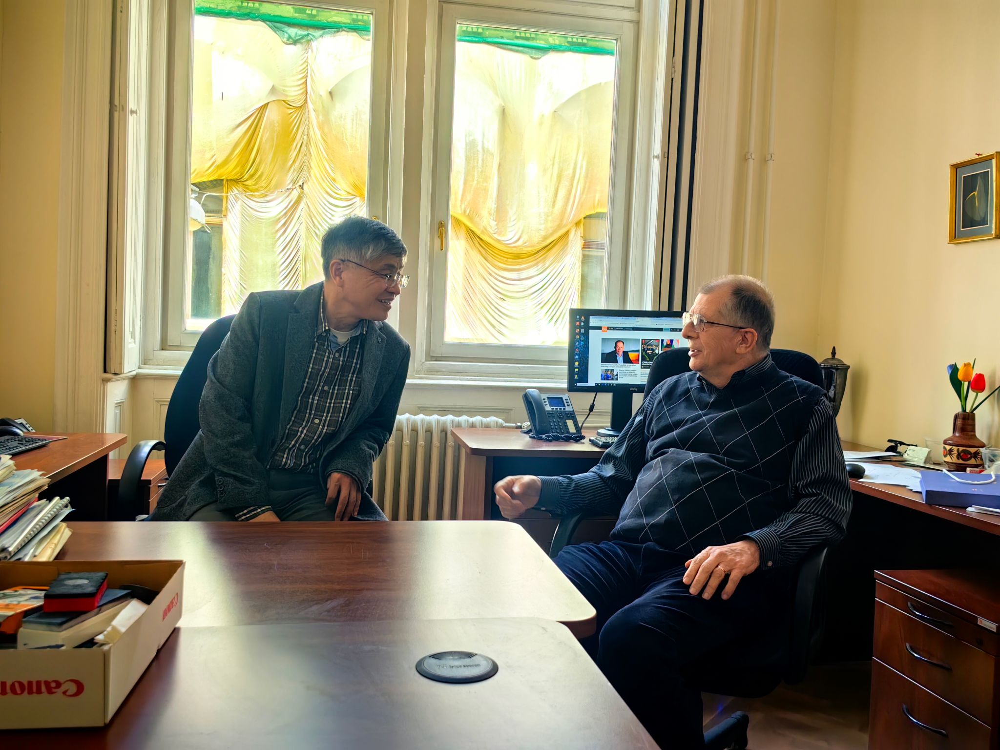 4月16日,代表团访问阿尔弗雷德・雷尼数学研究所,与Ervin Győri教授举行会谈。聂玉峰院长表示,雷尼数学研究所与啪啪啦 图论研究团队长期保持密切科研合作与学术往来,合作基础扎实、成果显著。希望以此次访问为新契机,进一步深化团队联合攻关、青年学者互派、学术资源共享与高水平论文联合发表,同时依托雷尼数学研究所的人才资源优势,搭建海外引才桥梁,吸引研究所优秀青年学者来校,持续提升两校在相关研究领域的国际学术影响力。