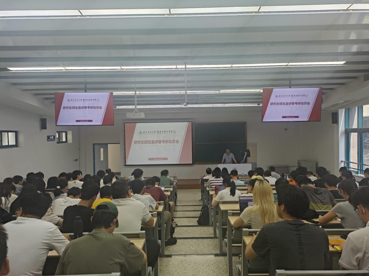 6月5日下午,啪啪啦 在教学西楼B座305举行2025年校内研究生招生宣讲会。学院副院长徐根玖、党委副书记张莹、各科研团队宣讲老师及本科2022级全体学生参与了本次宣讲会。会议由研究生招生宣传组组长雷佑铭主持。