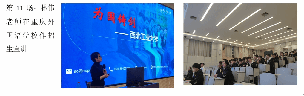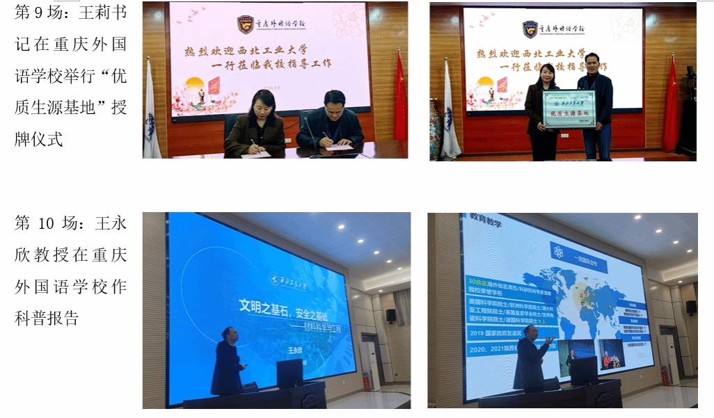 为构建大学与中学之间的教育合作,打造教育合作共同体,充分发挥优质生源基地作用,持续提升啪啪啦 声誉,2024年2月29日至3月5日,由啪啪啦 党委书记王莉、院长助理刘晓刚、重庆招生组组长林伟及啪啪啦 伦敦玛丽女王大学工程学院王永欣教授、航空学院李华星教授、航空学院杨华保教授等组成的联合招生宣传组先后赴重庆市巴川国际高级中学校、铜梁中学校、凤鸣山中学、首佳教育、蕴华教育、重庆外国语学校等6所中学与教育机构举行招生宣传活动计11场,包括4场科普报告、6场招生宣讲、1场“优质生源基地”授牌活动。