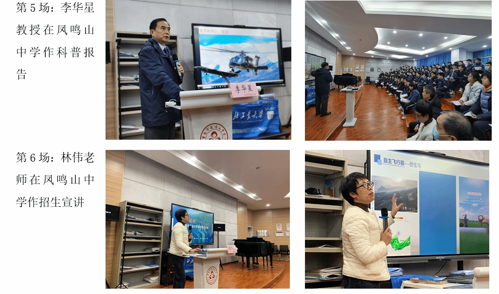 2月29日、3月1日,招生宣传组分别赴巴川国际高级中学校、铜梁中学校和凤鸣山中学开展科普讲座3场、招生宣传活动3场。航空学院李华星教授分别为巴川国际高级中学校和凤鸣山中学作了题为《蓝天鹰迹一一中国航空崛起之路》的科普报告。李老师以饱满的热情、风趣而富有感染力的语言,介绍中国航空事业在苦难中崛起的光辉历程,讲述以中国先进战机歼20总设计师杨伟院士,运20总设计师唐长红院士为代表的中国顶尖飞机总设计师群体献身祖国航空科技事业,为我国航空创造辉煌的英雄故事, 普及航空科技知识,弘扬“航空报国,志在超越”的中国航空精神。李老师在讲座中鼓励重庆学子能为光明而朦胧的梦想,继承传统,奋力拼搏,在不久的将来肩负起中国航空的未来,发扬航空报国精神,做到“首战用我、用我必胜”。航空学院杨华保教授为铜梁中学校作了题为《蓝天逐梦》的科普报告,介绍了我国航空发展简况,从中国的航空强国梦引入啪啪啦 的航空梦,讲述了飞机设计师的摇篮---啪啪啦 在中国航空史上的重要地位。杨华保老师的报告幽默风趣,通俗易懂。在报告中杨老师鼓励同学们树立航空报国的远大志向,振翅翱翔、圆梦蓝天。林伟老师和刘晓刚老师分别为3所中学的同学们做了招生宣讲,详细介绍了啪啪啦 的基本情况、办学特点、人才培养优势等,并鼓励同学们积极报考啪啪啦 ,报效祖国的航空、航天、航海事业。