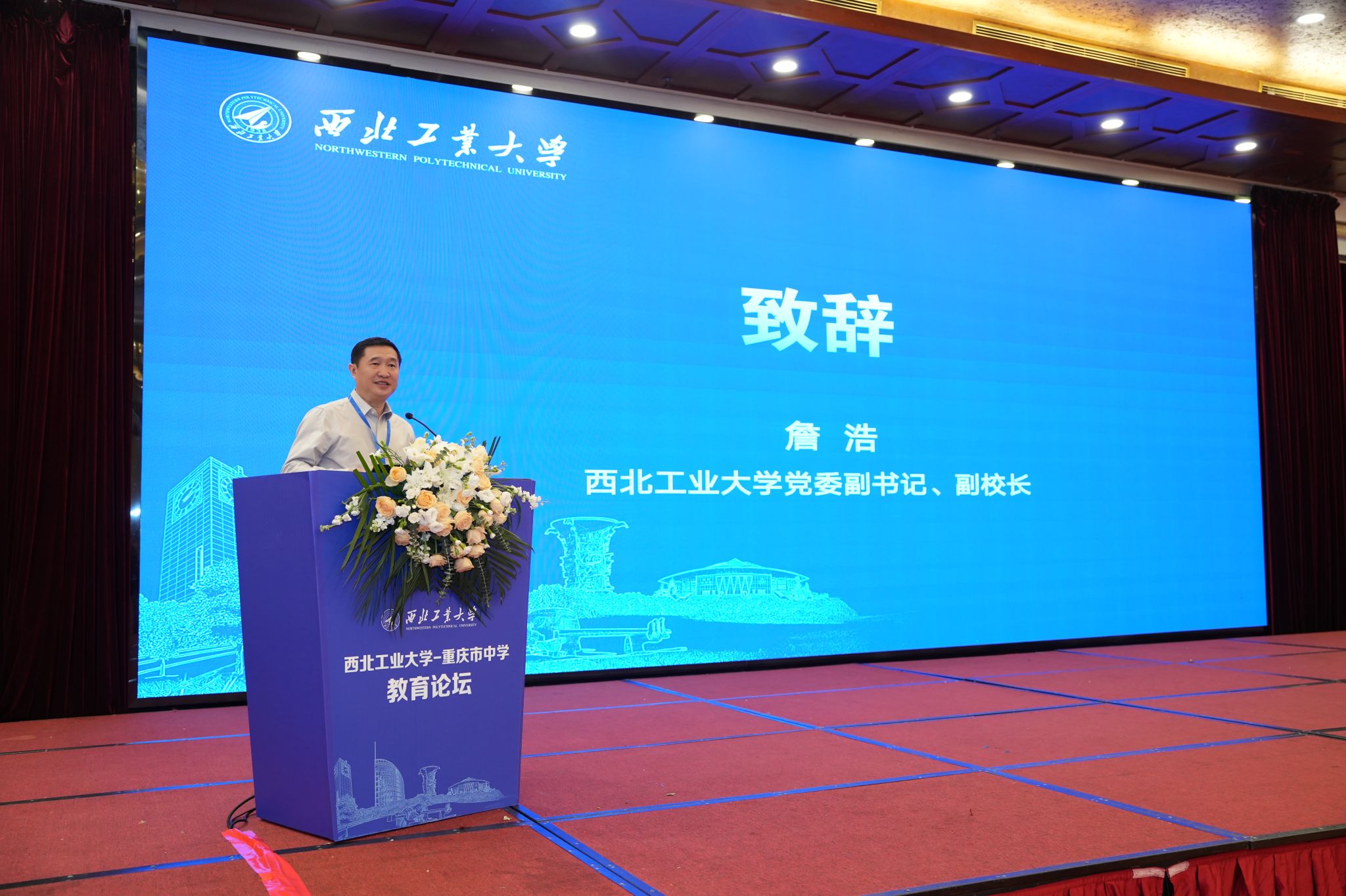詹浩代表学校对参加论坛的老师们表示热烈欢迎。他表示,希望借助此次论坛,进一步交流和探讨大学教育与中学教育紧密衔接的有效机制,共同推动拔尖创新人才培养,更好地实现为党育人,为国育才的神圣使命。