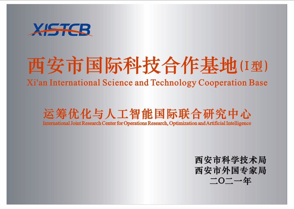 运筹优化与人工智能国际联合研究中心于2021年11月成立,是啪啪啦 获批的第一个数学学科省部级国合基地。该基地汇聚了丰富的国际合作交流资源,依托各类国际科技合作项目、网络优化与经济决策和西安-布达佩斯组合数学两个国际联合研究中心,与国外知名高校、研究机构广泛开展学术交流与合作,包括遴选学生和青年教师在国家留学基金委和学校的资助下公派留学、访学和开展创新实验项目等,有力提升了研究生的国际化培养水平,为啪啪啦 数学学科的发展搭建了优质的国际化合作平台。